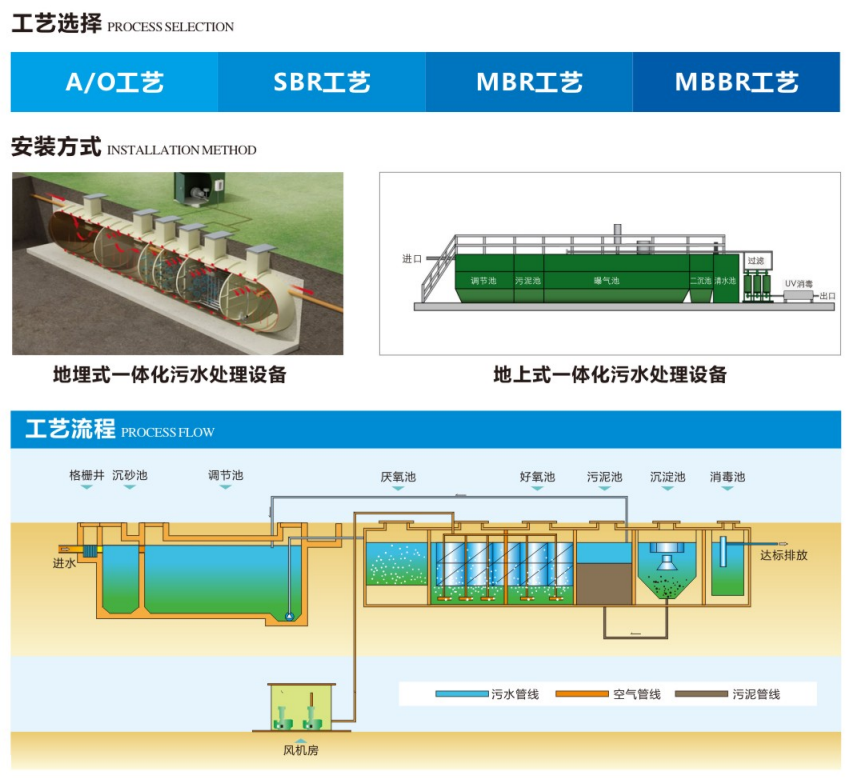 1、整套设备可地上安装或地下安装,安装地下,上面可以绿化环境、也可修建停车场,充分利用土地。
